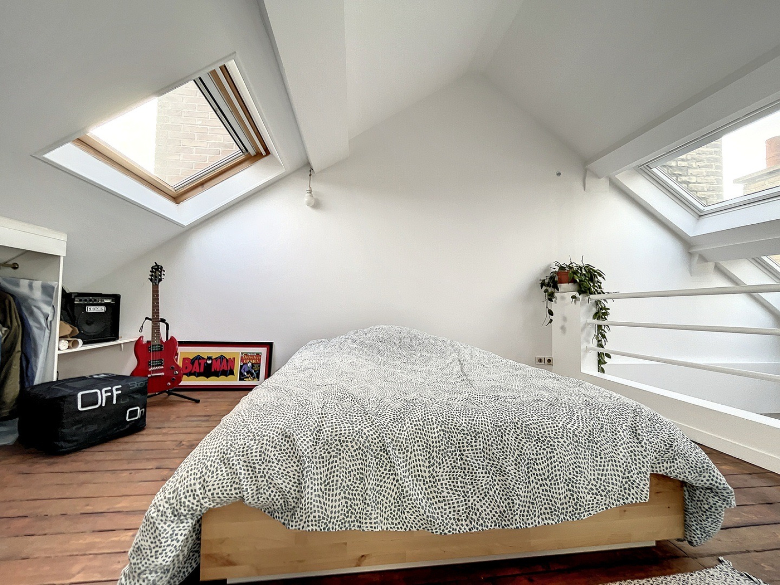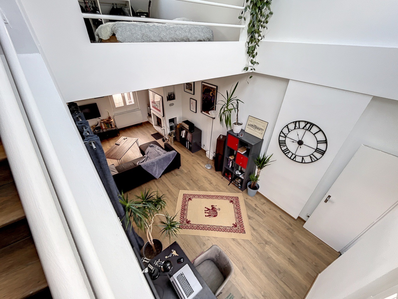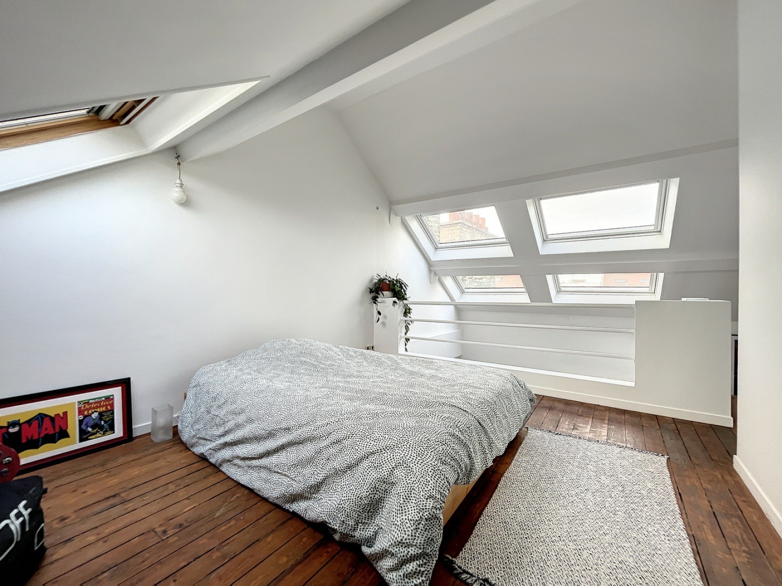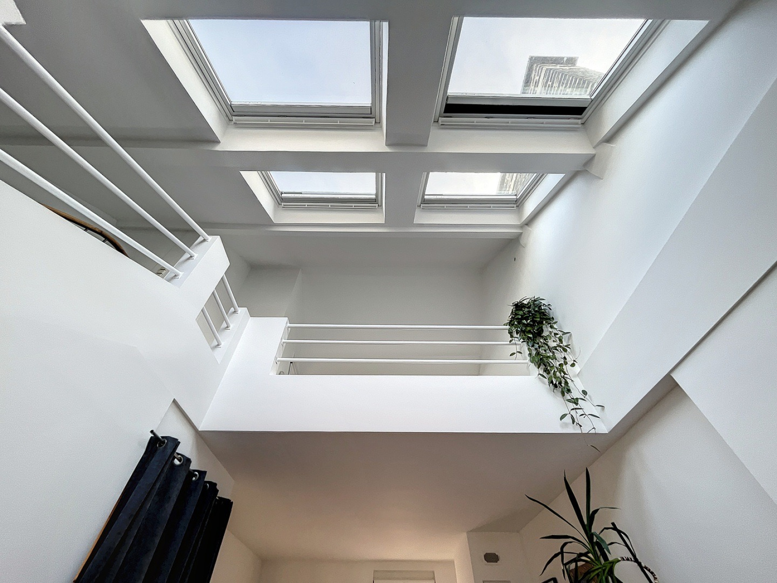 Cet appartement se compose comme suit: une entrée avec rangements, un palier, un salon/séjour de plus de 26m2 (5.5m de hauteur sous-plafond) et de surcroît baigné de lumière grace à ses 4 grands velux! Une cuisine séparée, ainsi qu'une buanderie.