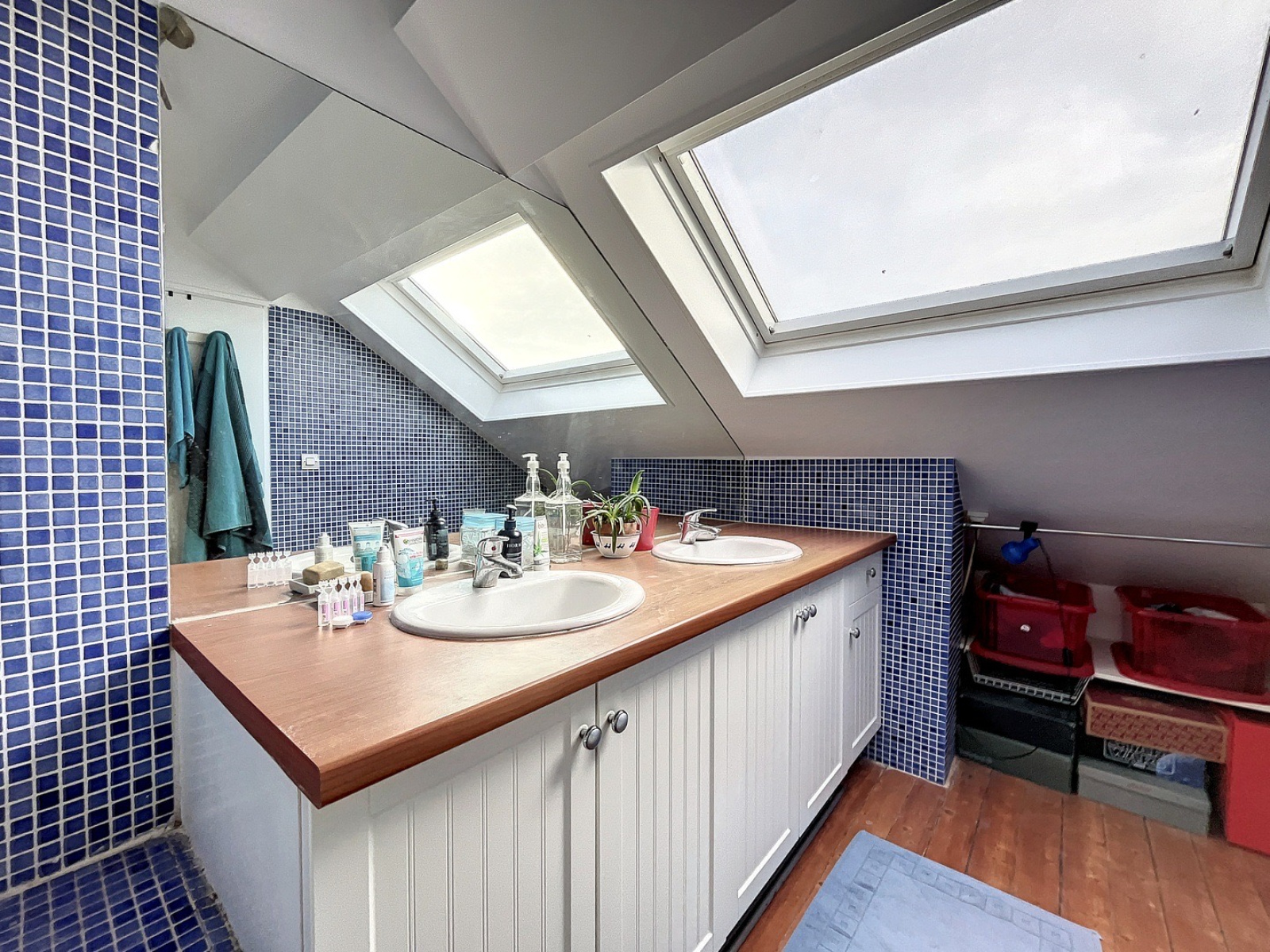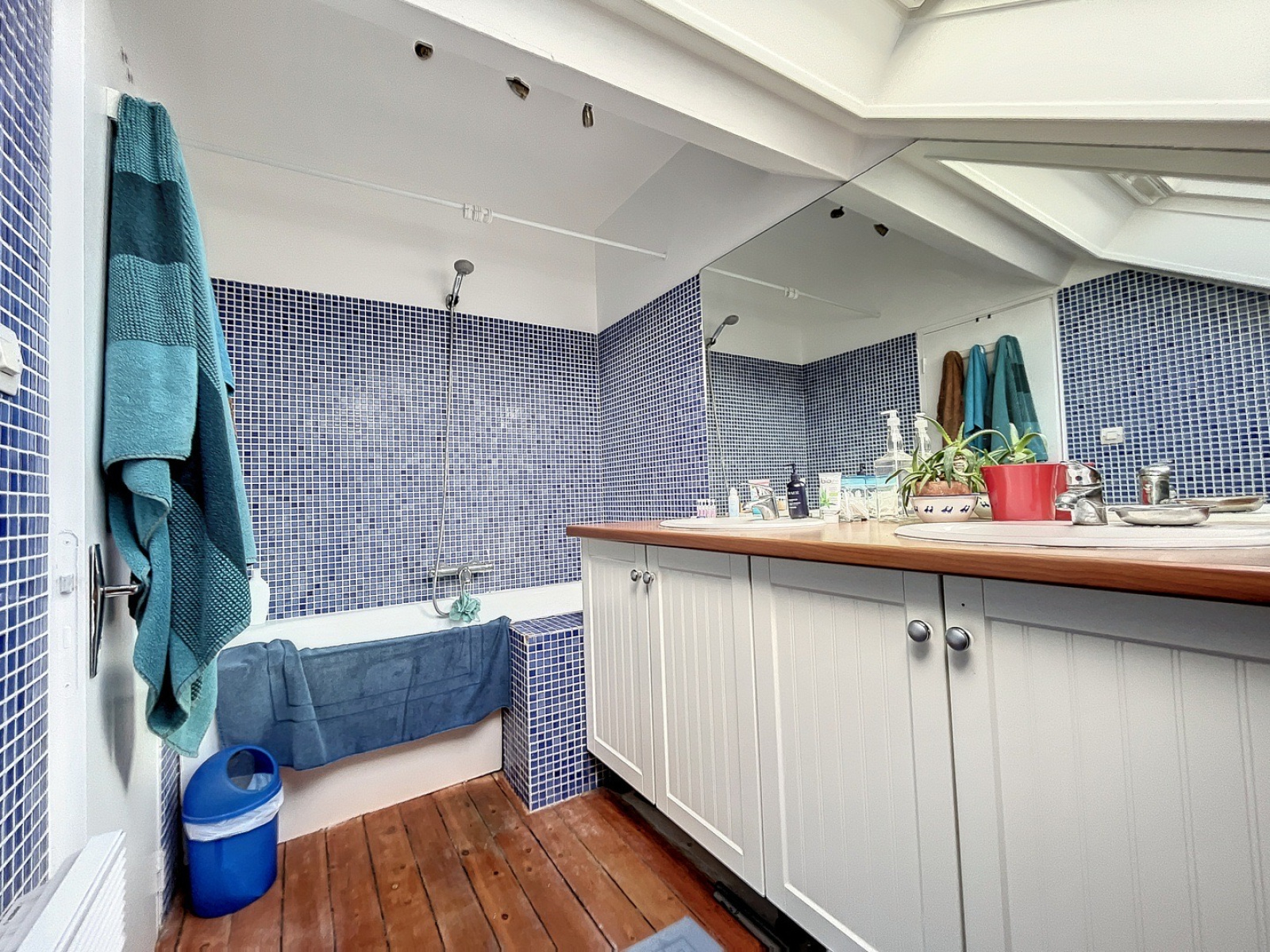À l'étage supérieur vous trouverez une chambre en mezzanine de plus de 14m2, une salle de bains avec double vasque ainsi que des WC séparés.