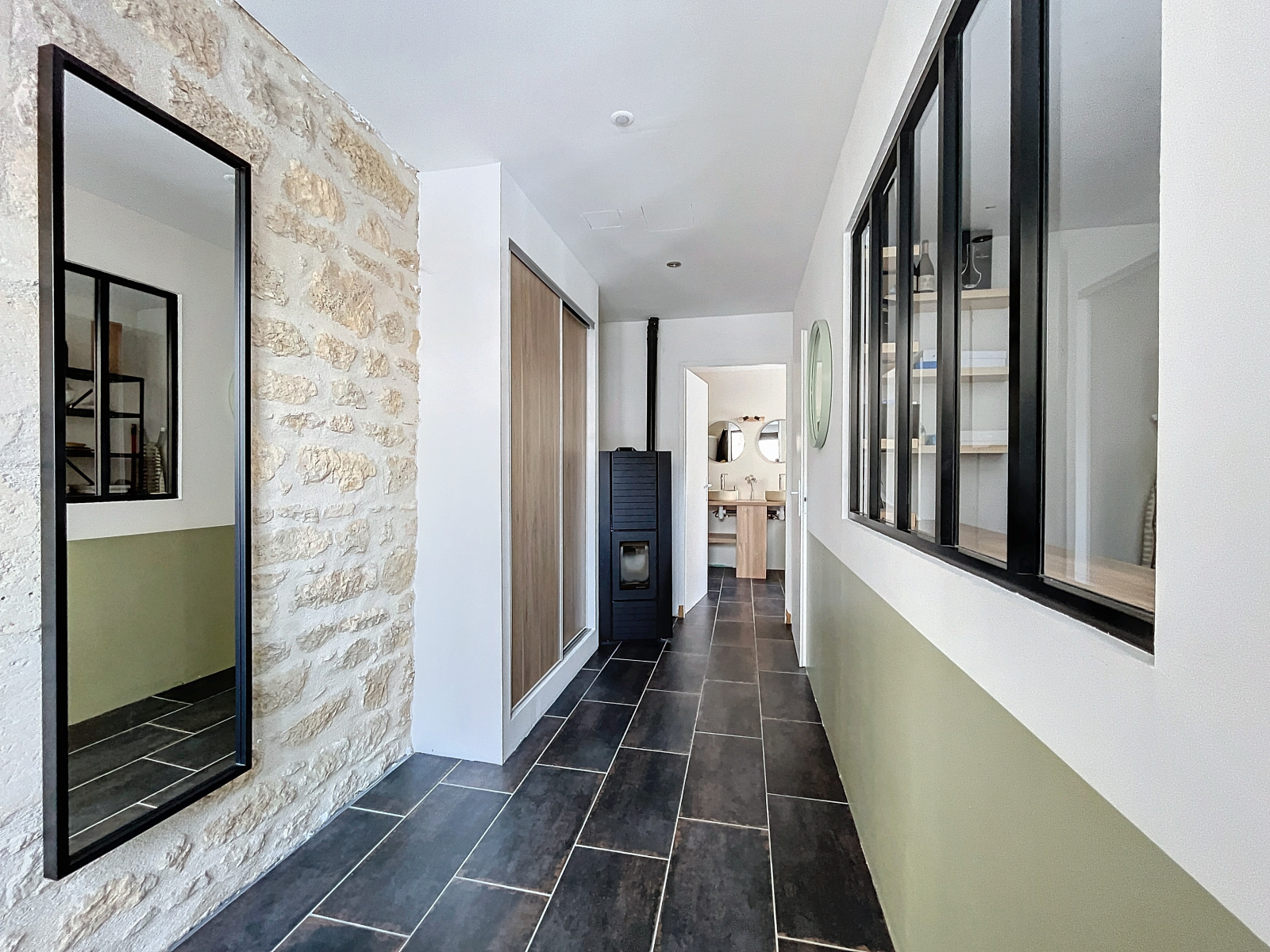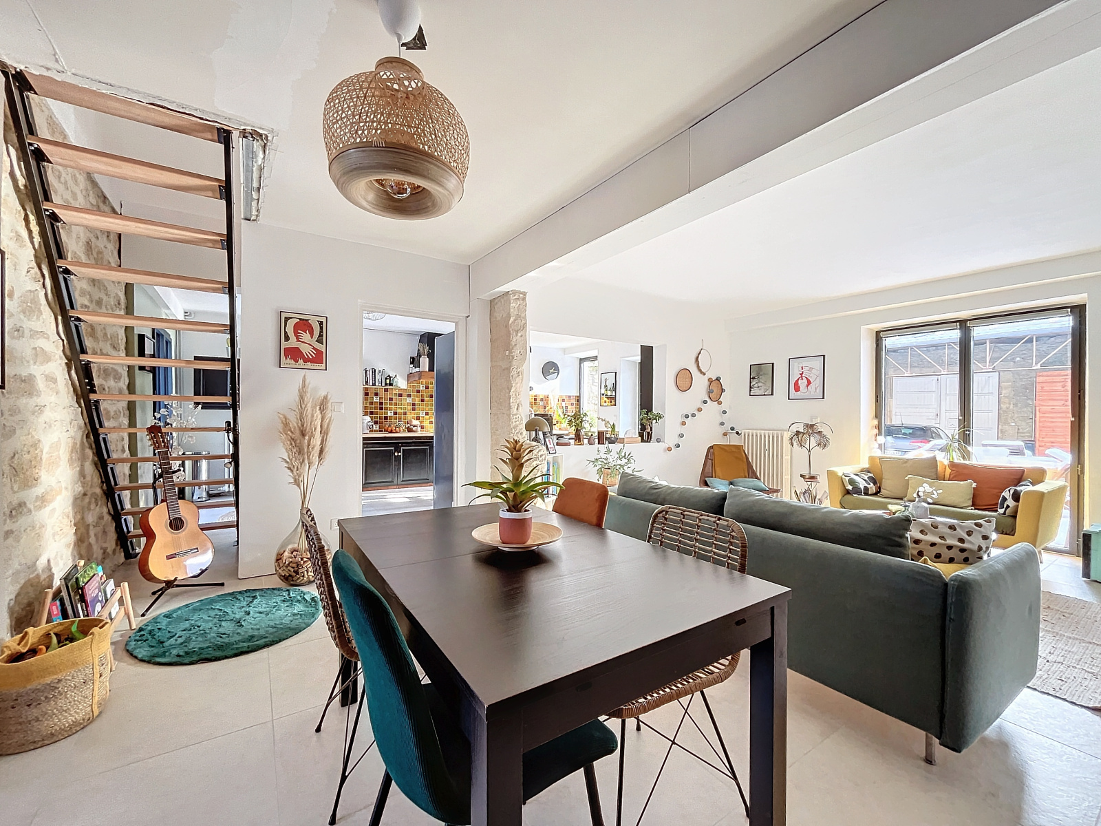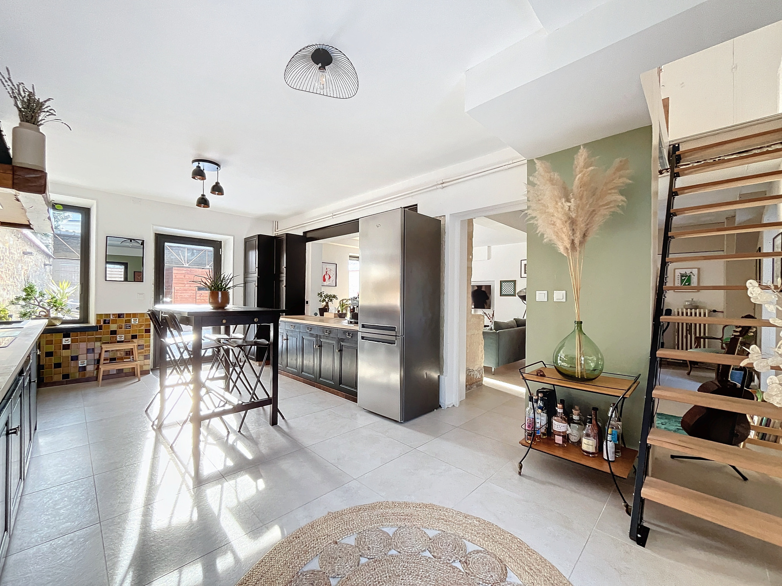Ce bien a été modernisé il y a peu et cumule donc une décoration tendance avec le charme de l'ancien. Il propose au rez-de-chaussée une cuisine entièrement équipée, un espace salon/salle à manger très lumineux, une salle de bains, des WC indépendants et une buanderie. À l'étage un palier desservant trois chambres, une salle de douches à rafraichir et des WC indépendants. Les combles sont aménageables et pourraient accueillir deux nouvelles chambres.