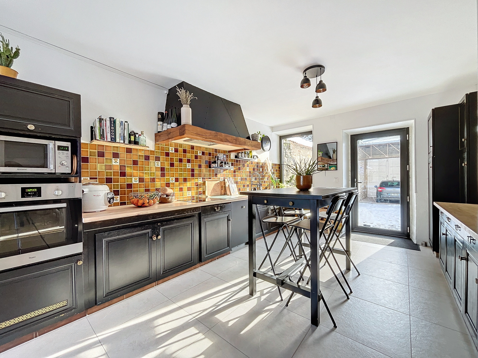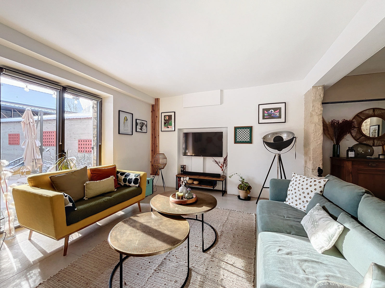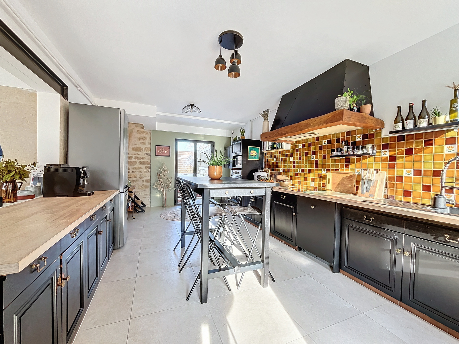 À l'extérieur un porche vous donne, de la rue, accès à une grande cour intérieure où vous trouverez une jolie terrasse bien exposée et une dépendance.