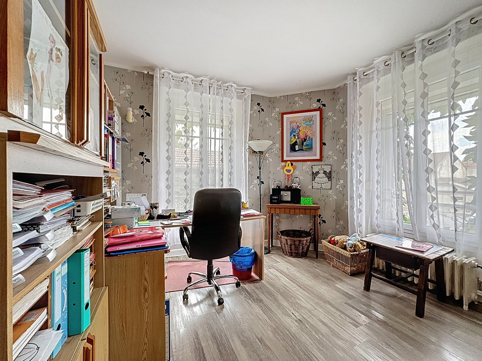 Au rez-de-chaussée : d'une entrée, d'un bureau, d'une buanderie/cellier, d'une cuisine, d'un salon, d'une salle à manger, de WC séparés, d'une salle de bains et d'un accès à la cave.