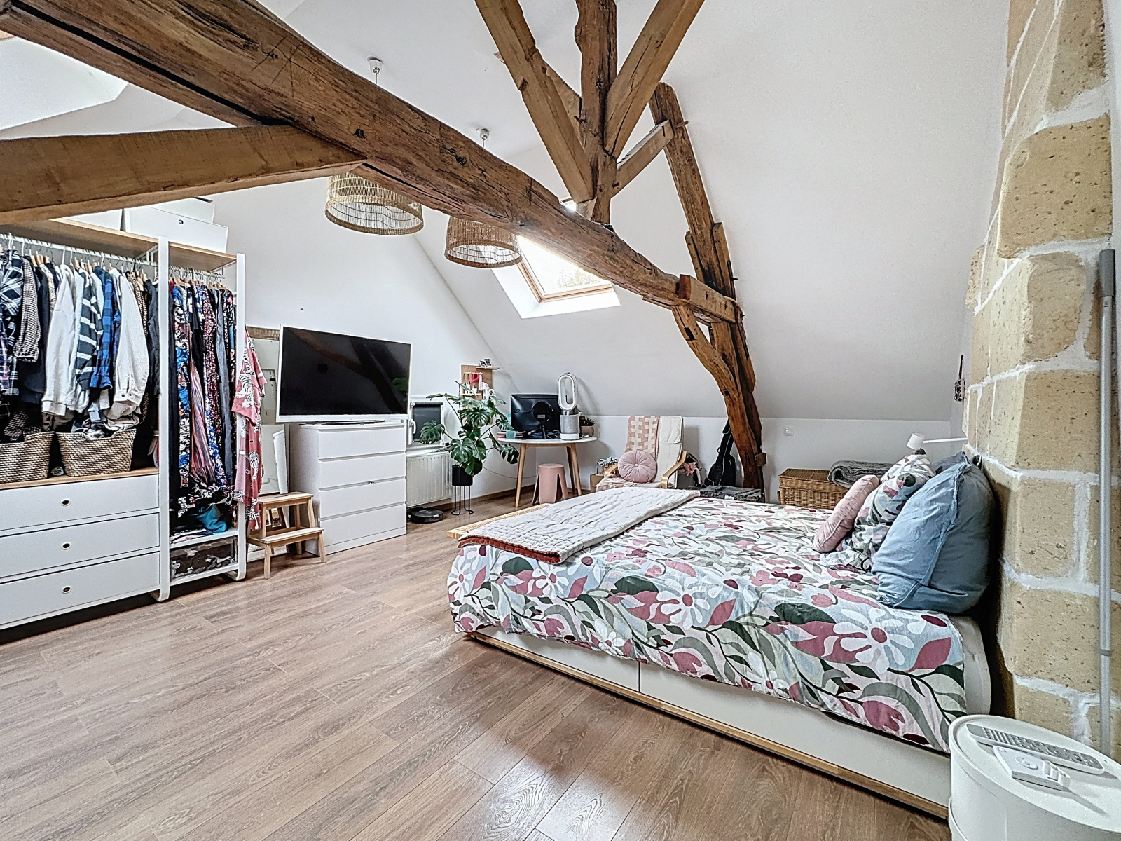 Chauffage pompe à chaleur et poêle à bois, huisseries PVC double vitrage, fibre optique.