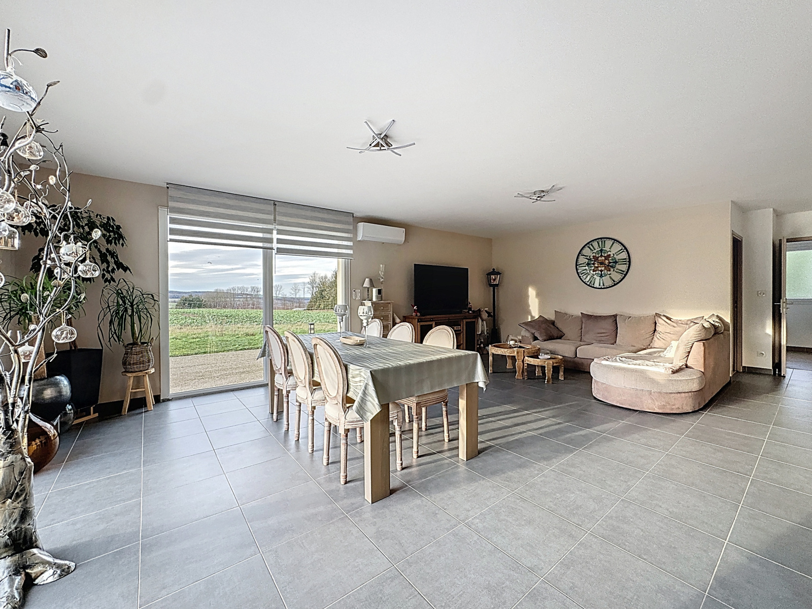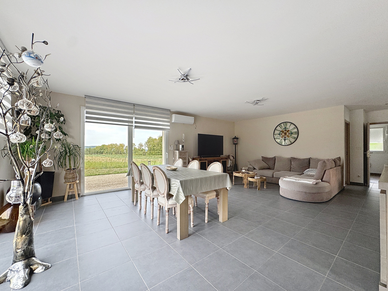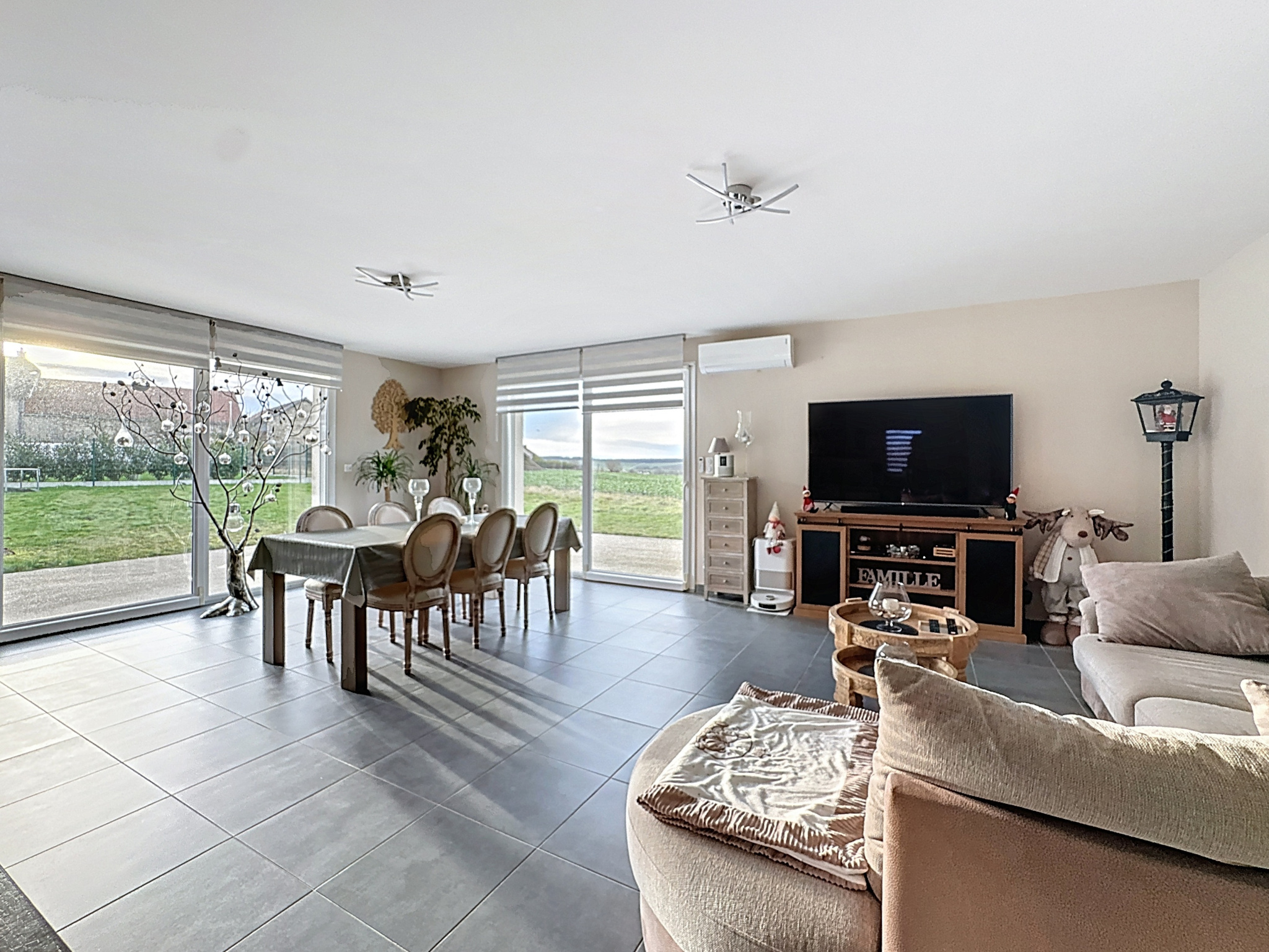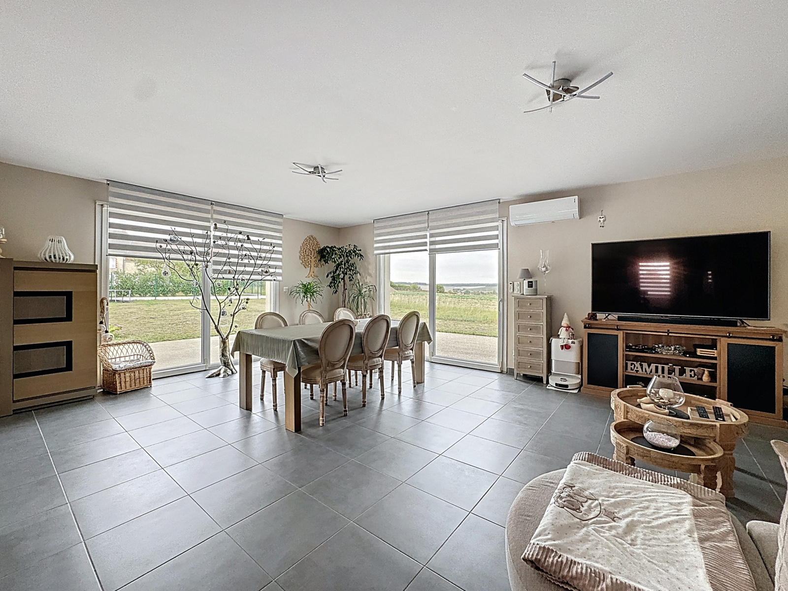 DPE en B, huisseries PVC double vitrage, volets électriques, domotique, fibre optique, chauffage au sol par géothermie et climatision reversible.