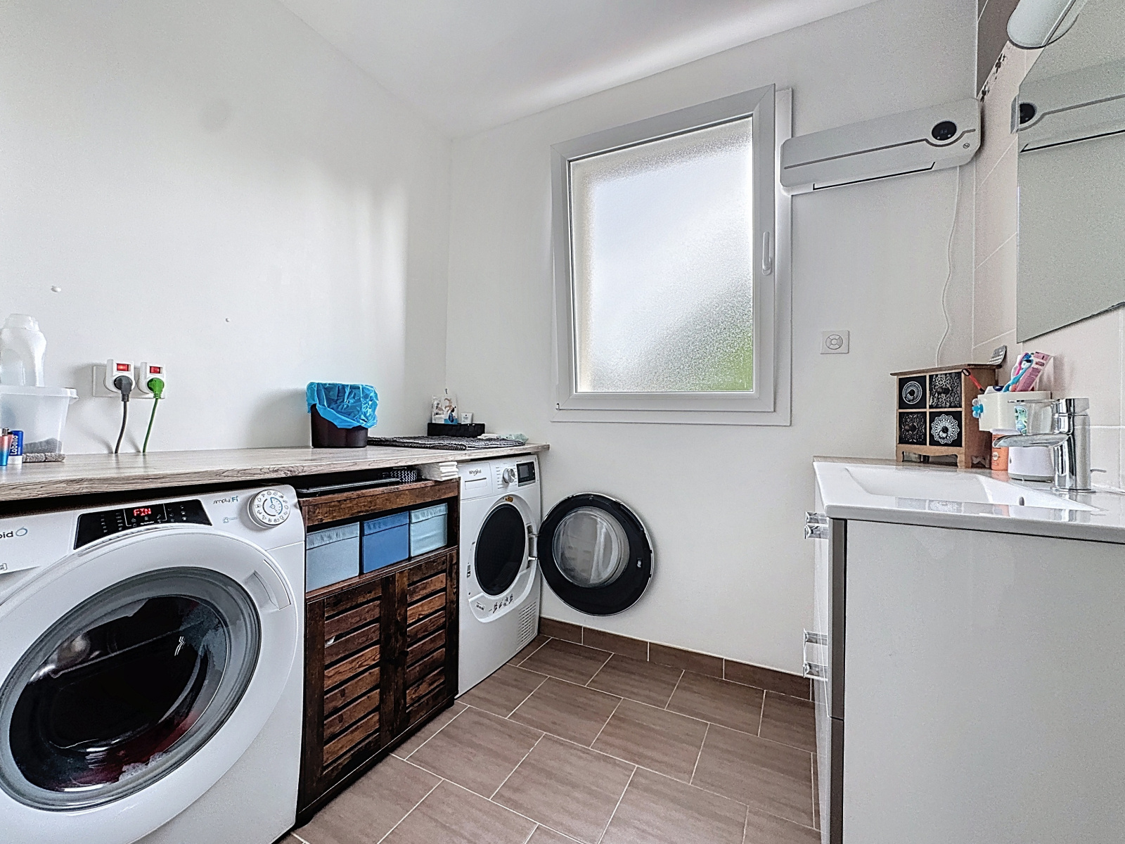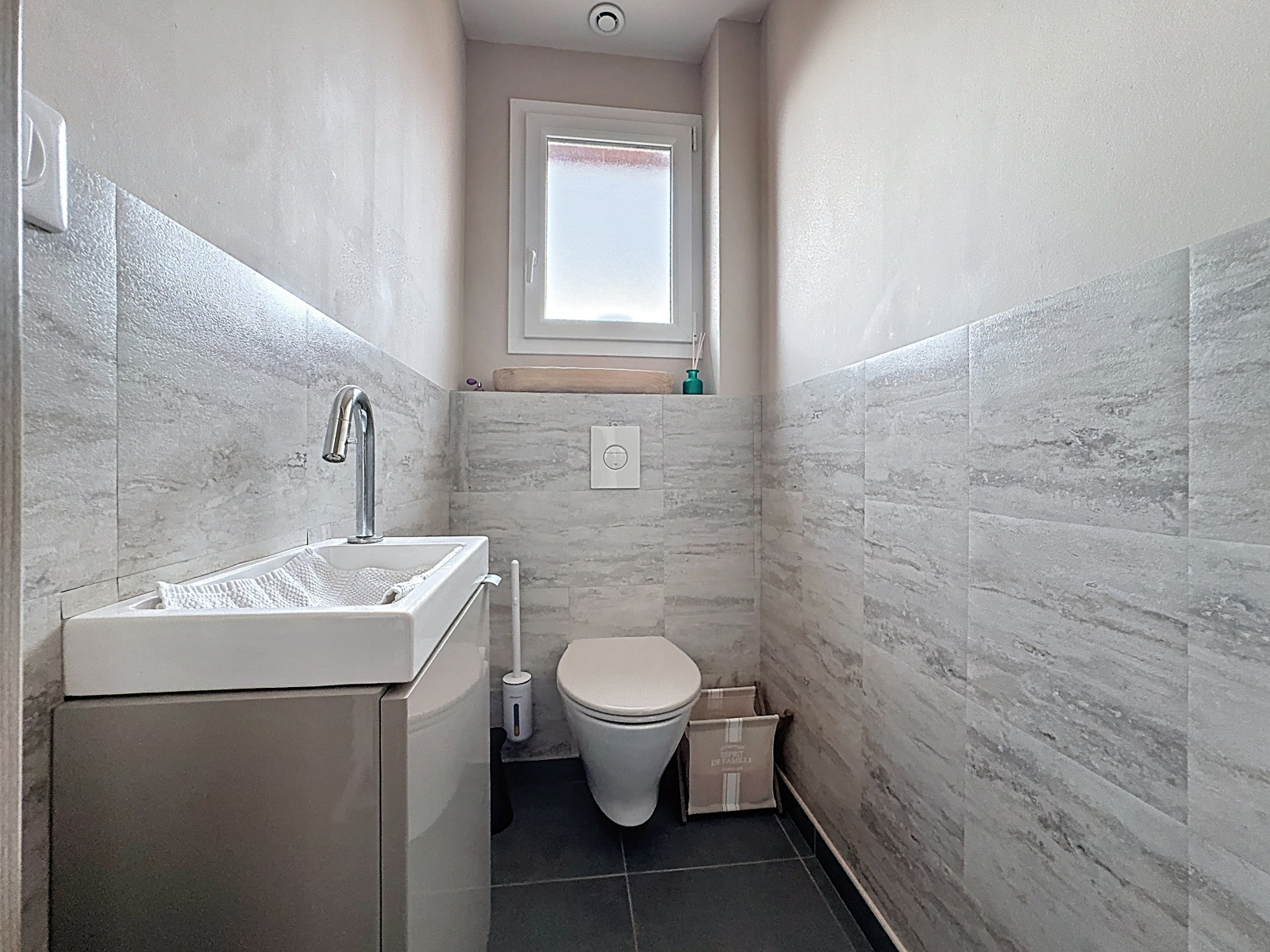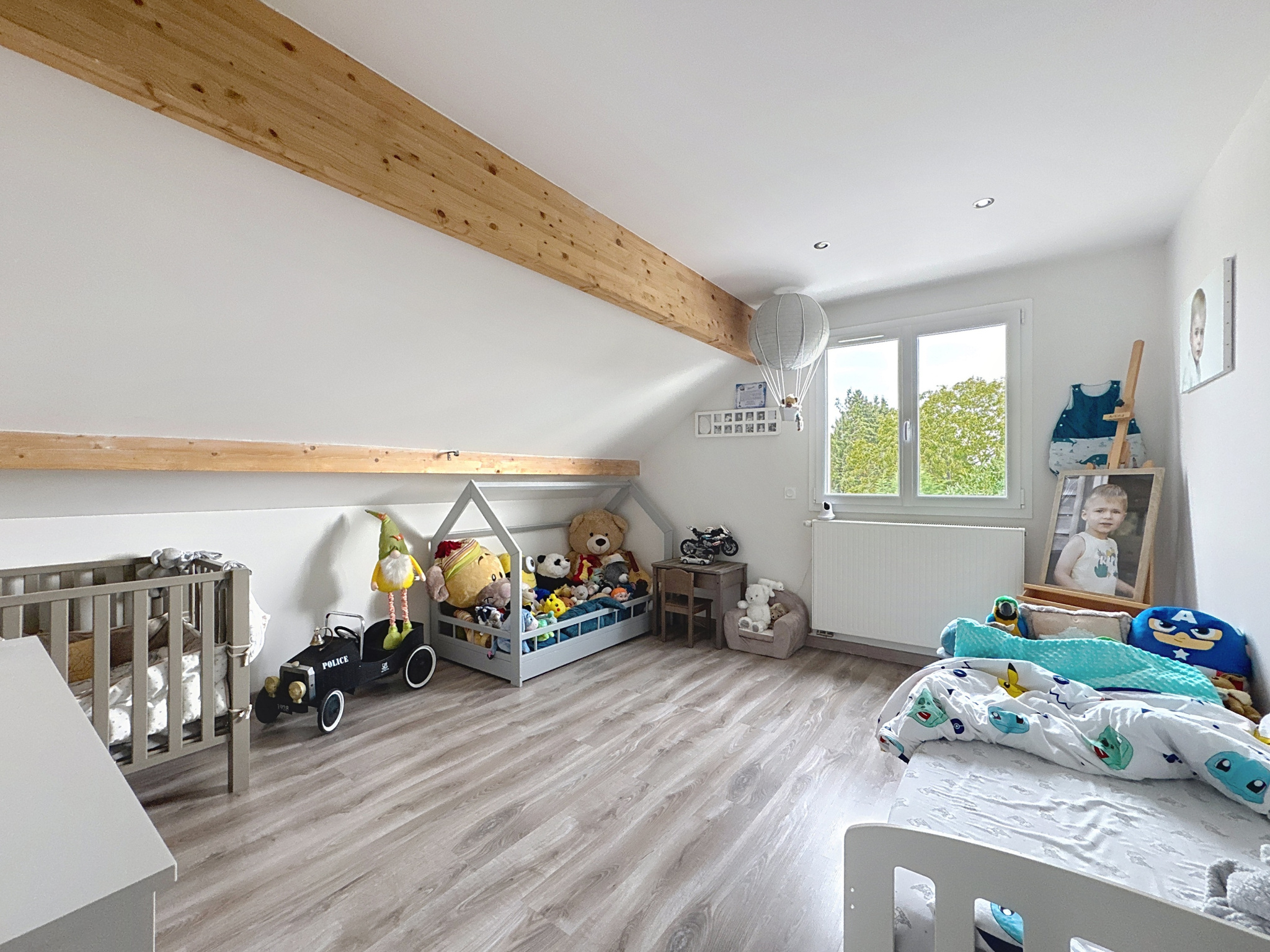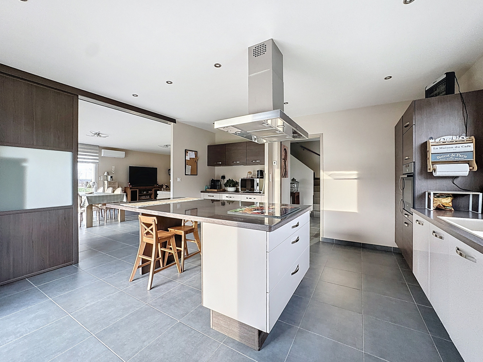 DPE en B, huisseries PVC double vitrage, volets électriques, domotique, fibre optique, chauffage au sol par géothermie et climatision reversible.